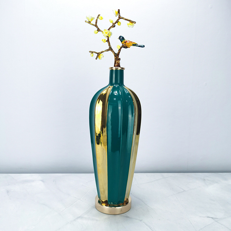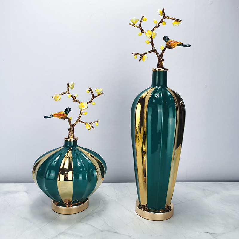 Elegant Ceramic Bird & Flower Vase Set for High-End Home Decoration