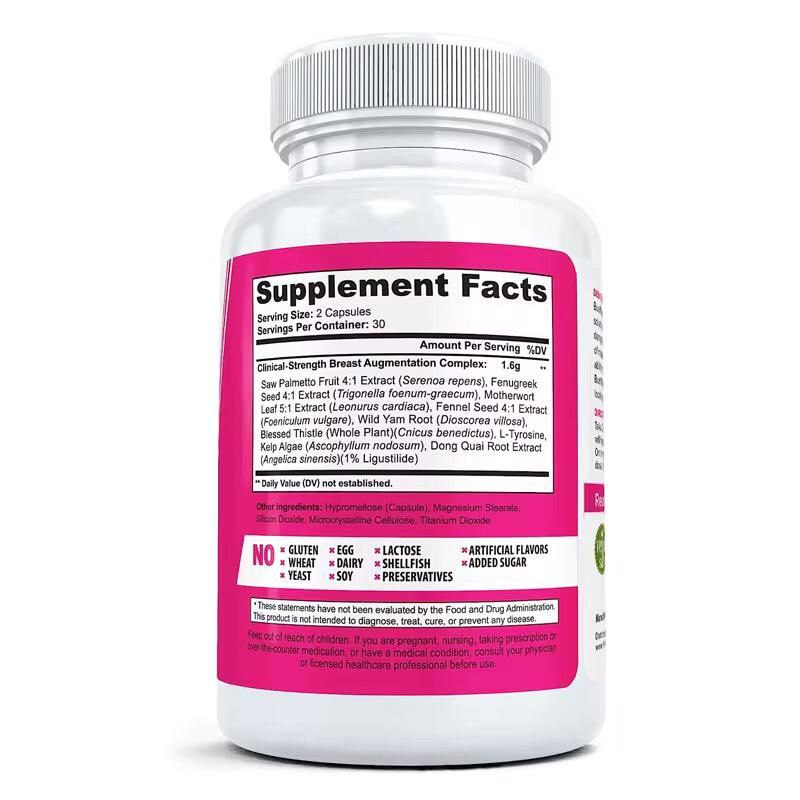Breast Enlargement Pills naturally enhance breast size and firmness. Made with a pharmaceutical-grade formula, these 60 capsules promote fuller, more youthful breasts.